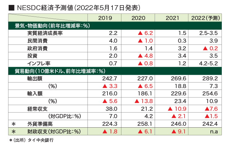 一方、タイ商業・工業・金融合同常任委員会(JSCCIB)は同月11日、22年の経済成長率予測を+2.5~+4.0%に据え置いた。外国人旅行者の入国規制緩和によって、観光業の回復は上振れする可能性があると指摘している。